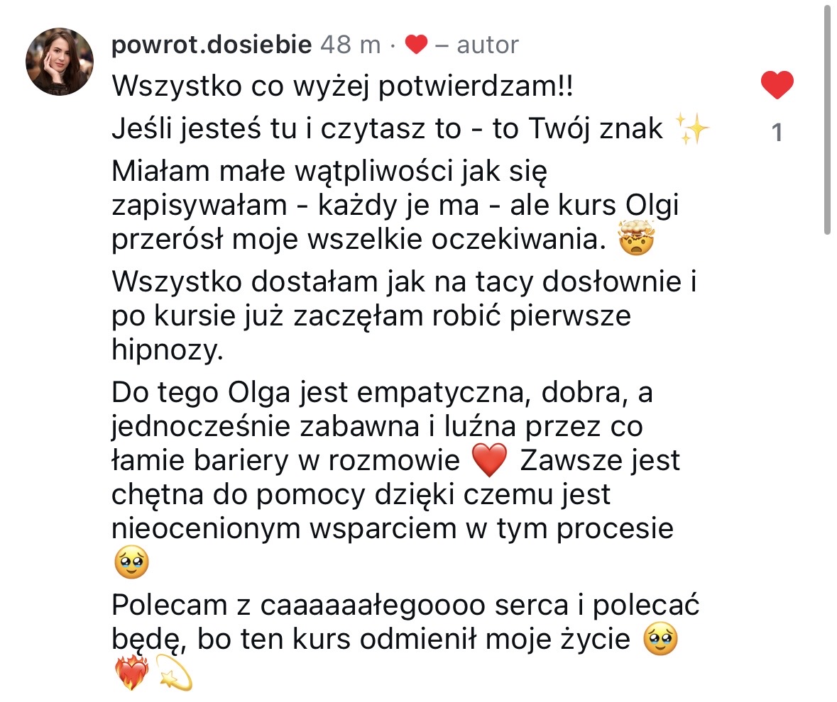 Przejdź ze mną pełną ścieżkę nauki hipnozy – od solidnych podstaw po zaawansowane techniki pracy z regresją, zapisami energetycznymi i transformacją emocji. Ten pakiet to kompleksowe przygotowanie do profesjonalnej hipnoterapii!